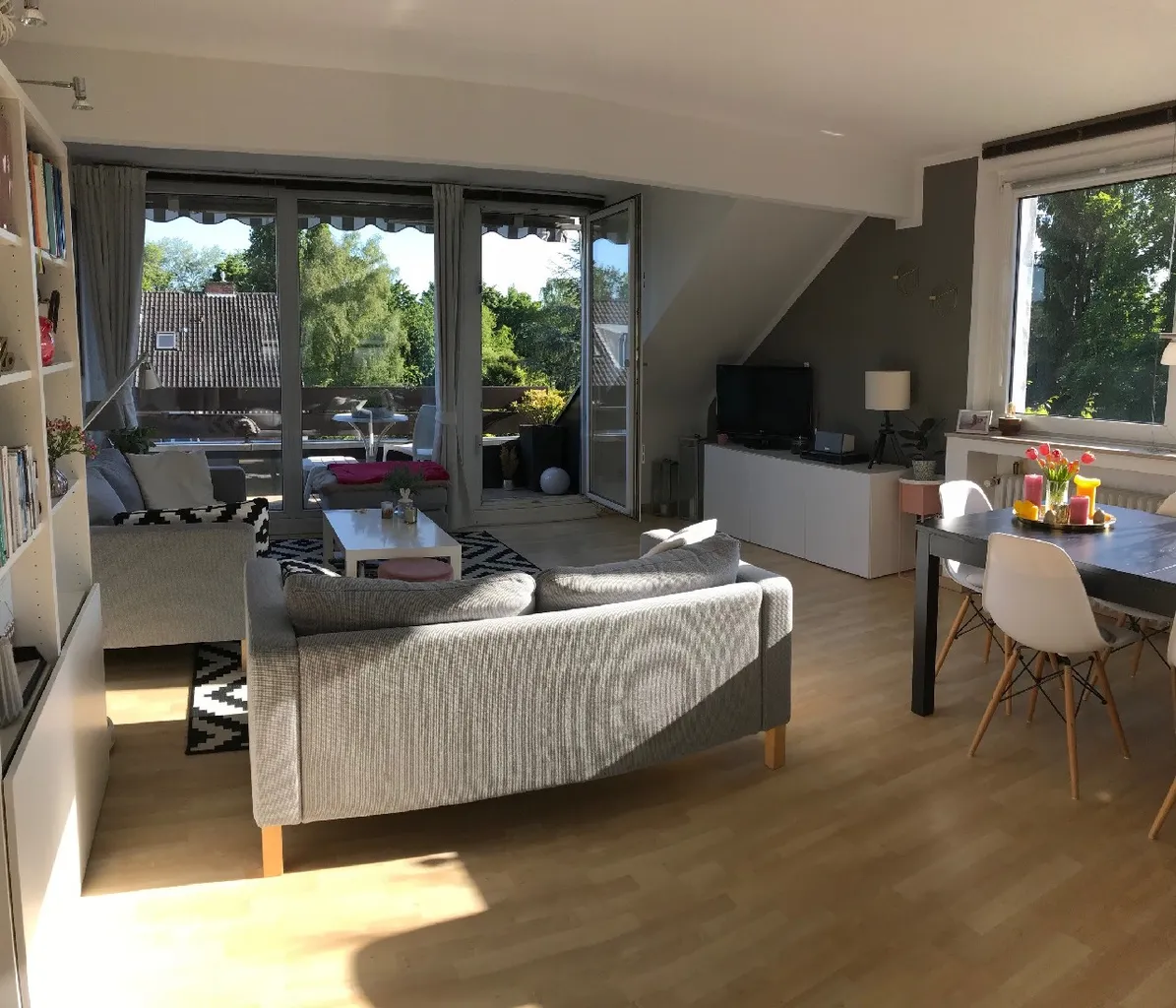 Die moderne, lichtdurchflutete 2-Zimmer-Dachgeschosswohnung in einem gepflegten 3-Fam.-Haus verfügt über eine Dachterrasse mit weitem, herrlichen Grünblick.