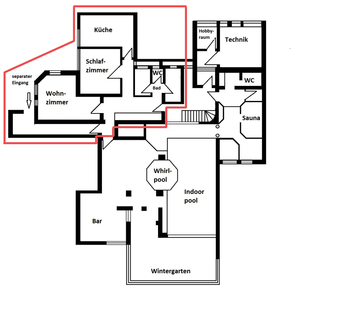 - Wintergarten: Wohnzimmer und Schwimmbad