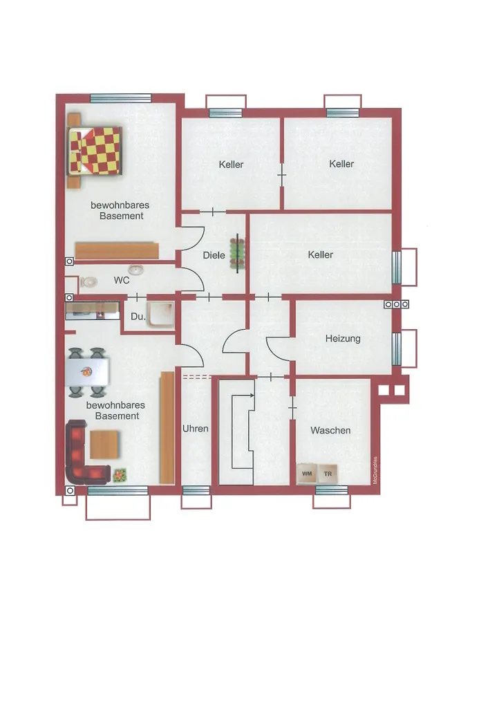 Zusätzlich verfügt diese Ebene noch über den Wasch- und einen großen Lagerkeller.