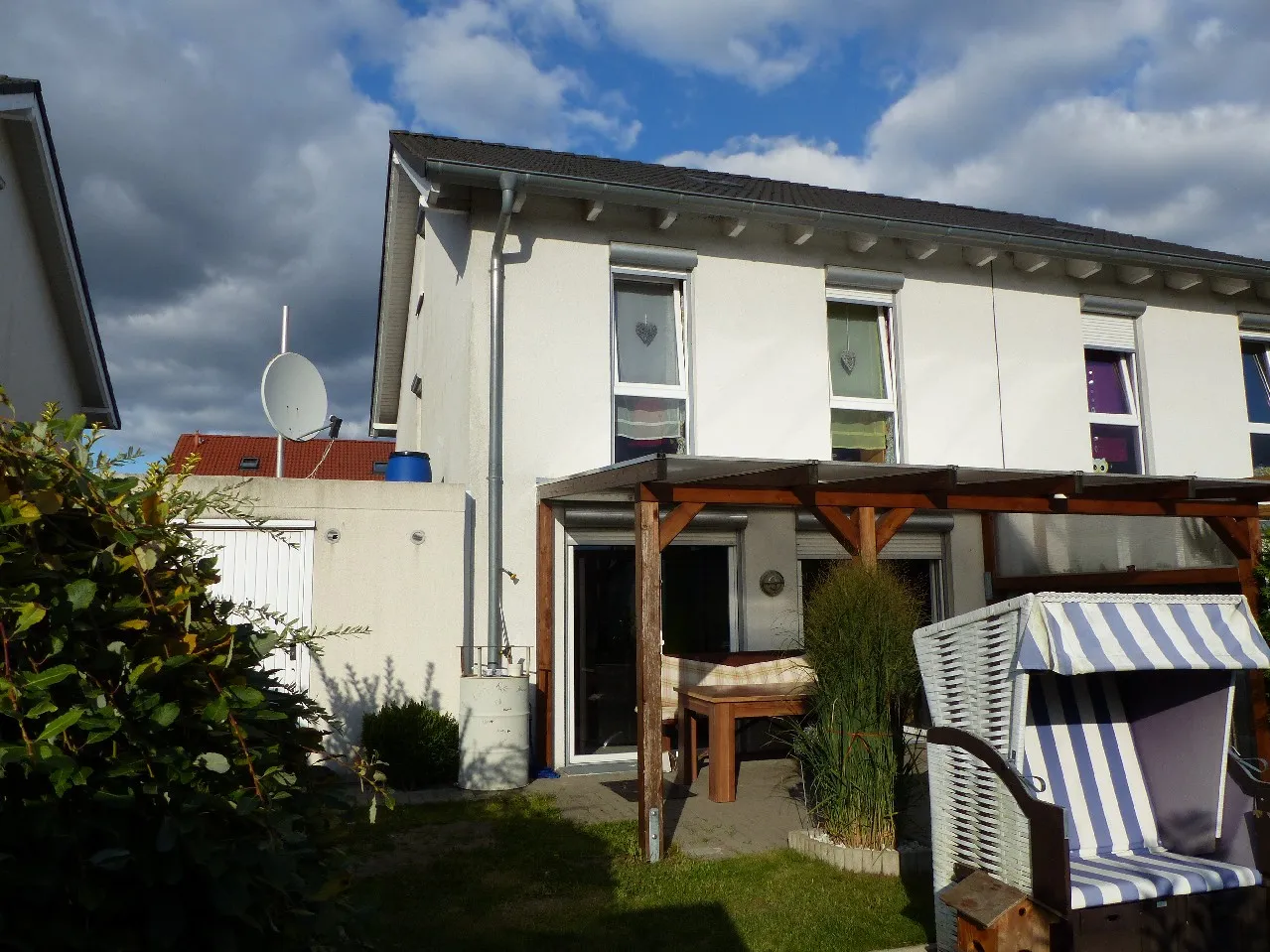 Es handelt sich um eine solide, voll unterkellerte Doppelhaushälfte mit rd. 128 m² bewohnbarer Fläche. Das neuwertige 5-Zimmer-Haus wurde 2005 in massiver Bauweise errichtet und ist nach Süd-Westen ausgerichtet. Die hellen und freundlichen Räume präsentieren sich in einem sehr gepflegten Zustand. Neben dem lichtdurchfluteten Wohnbereich befinden sich im Erdgeschoss die große Wohnküche sowie das tagesbelichtete Gäste-WC mit bodentiefer Dusche. Das Obergeschoss bietet Ihnen drei Schlafräume und ein tagesbelichtetes Masterbad. Das gemütliche Dachstudio ist bewohnbar ausgebaut und verfügt über einen weiteren Schlafraum und Hobbyraum. Im großzügigen Kellerbereich befinden sich ein Wasch-/ Trockenraum sowie ein großer Vorrats-/ Hobbykeller mit Kellerbar. Die ans Haus angrenzende Einzelgarage mit vorgelagertem Stellplatz ist im Kaufpreis enthalten.